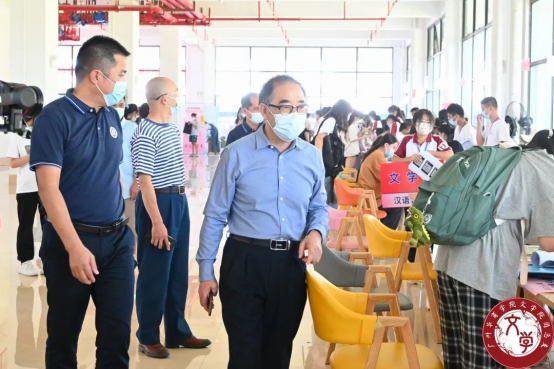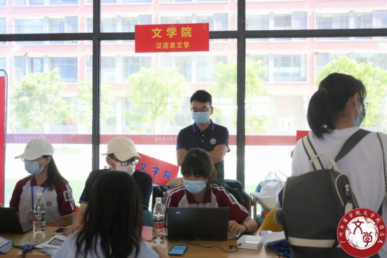 注册结束后,志愿者为新生贴上带有文学院院徽臂章贴纸,发放文学院团总支以及学生会的招新宣传单、为新生递上定制扇子,注册工作全程井然有序,展现出驻营老师和志愿者们的热心、细心、耐心,呈现出华商学子的良好风貌。