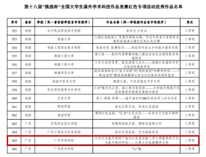 此前,该团队成功入选 2023 年全国“七彩假期”志愿服务示范团队,作品曾获第十七届“挑战杯”广东大学生课外学术科技作品竞赛红色专项赛省级特等奖、入选 2023 大学生社会实践成果“千校千项”网络展示活动“项目优秀奖”与“视频优秀奖”、入围 2023 年"我的返家乡实践故事"征集活动展示点赞环节等荣誉。