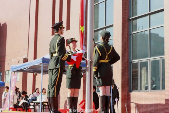 日初升,国歌唱响,五星红旗在师生的注目下缓缓升起,旗帜飞扬,迎风招展。