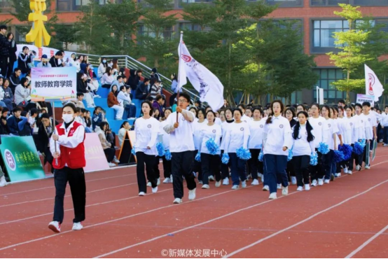 第三方阵为文学院代表方阵,初心如磐,使命在肩身着白衣,勇攀高峰,奋力拼搏铸辉煌,汗水闪耀映赛场。
