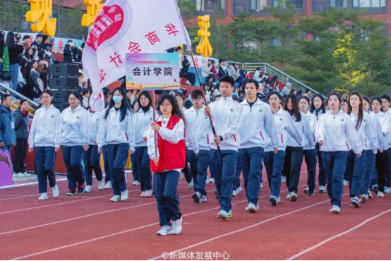 第二方阵为会计学院代表方阵,运动无处不在,青春永不言败,砥砺前进,勇攀高峰,追求卓越,成就未来。