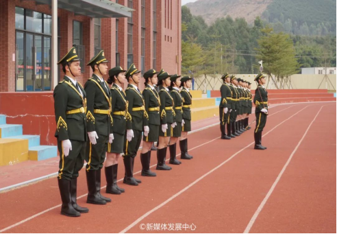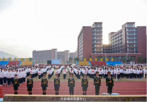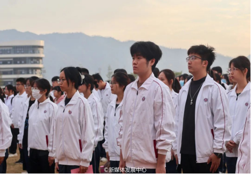 操场上全场庄严肃静,伴随着国歌的响起,华商学子齐齐抬头注视着国旗的缓缓升起。
