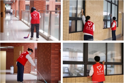 ——教室清扫。校园文明,你我共行。清扫卫生、擦去尘埃,迎接崭新的开始。志愿者们积极投入,撸起袖子加油干!他们耐心地清扫教室、教学楼等区域,做到“卫生无死角”,整个过程细致、有序。每一名志愿者都以实际行动共同为师生营造出一个干净、整洁、舒适的工作与学习环境,他们背后忙碌的身影,“将全心全意为同学服务”的理念根植于心,躬身实践,真正做到了以服务暖心,诠释了真诚的劳动精神,凝聚着属于华商学子的阵阵暖意。
