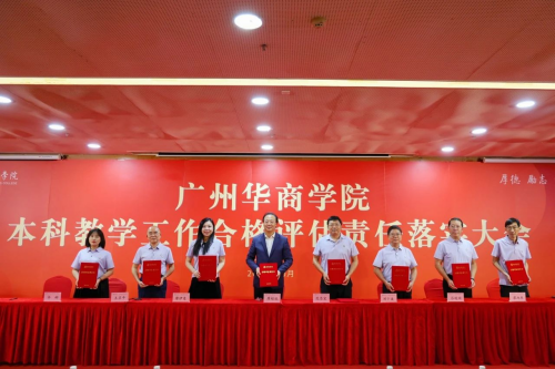 为进一步细化合格评估的标准和要求,有序推进我校本科教学工作合格评估,落实大会上,廖榕就董事长与全体校领导、党委书记陈玉欢与各二级学院及职能部门负责人分别签署本科教学工作合格评估责任书。全体教职员工表示将以满腔的热情和高度的责任心投身到迎评促建工作中,以最佳状态、最优成绩打赢本科教学工作合格评估攻坚战。