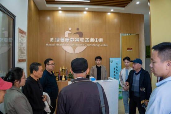 会后,老领导一行参观了心理健康咨询室、图书馆、同声传译室、钢琴室、健康医学实验室、报告厅、体育馆、宿舍、饭堂、大礼堂等,对校区的教学设施建设表示肯定,了解学校在教育教学工作、校园文化建设等方面取得的成效。领导们围绕可持续发展提出了针对性建议,着重指出心理咨询服务的重要性,建议工作人员以热情、专业的态度为同学们排忧解难。食品安全也是老领导们特别关心的问题。老领导们在第二饭堂与同学们亲切交谈,了解学生的饮食情况。