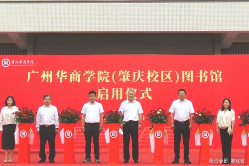 随后,校长胡军,副校长范忠宝、焦方太、余家军、许娜,华商科教集团副总裁刘文琦共同为图书馆剪彩,标志着肇庆校区图书馆正式启用。这不仅是校园硬件设施的迭代升级,为即将到来的二十周年校庆献上的一份厚礼,更是学校深度赋能教学科研、推进学校内涵式发展的精准响应。