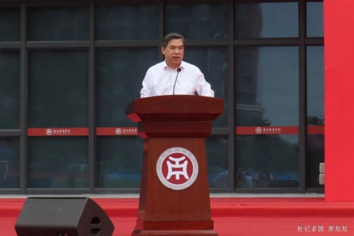 仪式伊始,校长胡军教授代表学校致辞,并对董事会和集团对图书馆建设的大力支持以及在建设过程中辛勤付出的师生员工表示衷心的感谢。胡校长指出,文化是大学的精神根基,是滋养师生心灵的源泉。肇庆校区图书馆的建成启用,是学校发展史上具有里程碑意义的大事。它不仅是物理空间的拓展和硬件设施的升级,更是学校“文化育人”核心办学理念的生动实践,是打造独具特色的“华商文化”体系的关键基石。他强调,这座集现代化、智能化、人性化于一体的知识殿堂,从蓝图变为现实,凝聚着全体华商人的智慧与汗水。其启用恰逢学校本科教学工作合格评估关键阶段和建校二十周年庆典,既是对过去二十年办学成就的一次集中检阅与展示,更是面向未来、谋划高质量发展新篇章的前瞻布局。