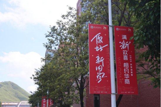 “欢迎新同学”醒目的欢迎标语早已就位,肇庆校区各部门经过前期周密筹备,全面投入到迎新工作中,为新生提供贴心的服务和保障。