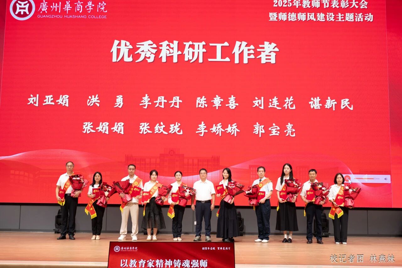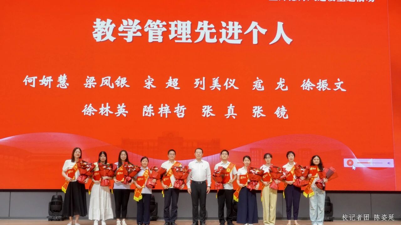 大会在庄严的国歌声中正式开始。会上,学校党委书记陈玉欢宣读表彰文件。陈书记提到,近一年来,广州华商学院广大教师奋发有为、锐意进取,学校教学科研工作成果丰硕,共获得省级以上奖励或项目立项58项。在学科竞赛领域,学校斩获国家级奖项36项、省级奖项1项,其中管理学院袁仕海老师、杨惠茜老师指导的中国国际大学生创新大赛荣获“金奖”;教师教学比赛中,获省级奖项11项;高等教育教学改革项目方面,获省级以上立项11项。此外,今年有2人获南粤优秀教师荣誉称号,5人获民办教育优秀教师荣誉称号,3人获优秀教育工作者荣誉称号。值得关注的是,学校今年首次体系化、制度化开展校级教师荣誉评选,进一步完善了教师激励体系。