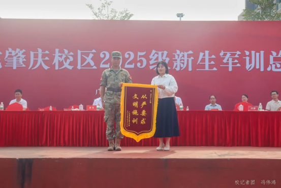 学校领导分别向承训部队赠送锦旗并接回军训团团旗。一面锦旗承载着学校的深深谢意,一面团旗见证了同学们的汗水与成长。