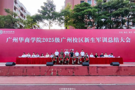 广州华商学院2025级新生军训总结大会于9月29日、30日分别在广州校区与肇庆校区隆重举行。校长胡军,党委书记陈玉欢,副校长刘少波、焦方太、吕峻闽、余家军、许娜分别出席两校区军训总结大会,各二级学院、职能部门负责人、2025级全体新生。副校长焦方太、许娜分别主持军训总结大会。