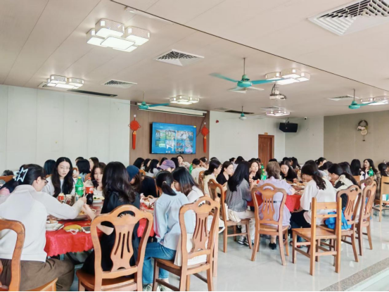 中午时分,老师们统一乘车前往当地一家颇具特色的农庄共进午餐。农庄环境清幽,绿树环绕,田园风光尽收眼底。席间,老师们品尝着美味佳肴,交流互动,其乐融融。用餐过程中,工会相关负责人代表学校向全体女教职工致以诚挚的节日问候和美好祝福,感谢她们在教学、科研、管理等各岗位上为学校发展所付出的辛勤努力。温馨的话语、真诚的关怀,赢得了在场老师们的阵阵掌声。
