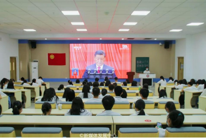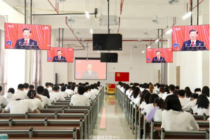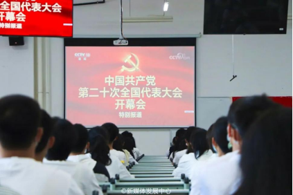10月16日上午,举世瞩目的中国共产党第二十次全国代表大会在北京人民大会堂隆重开幕。我校团委组织四会校区各校级学生组织、二级学院团支部书记、学生社团等师生代表近300人在8号楼108、6号楼201课室集体观看中国共产党第二十次全国代表大会开幕会。其他华商学子主动进行线上线下学习,认真聆听学习习近平总书记代表第十九届中央委员会所作的工作报告。