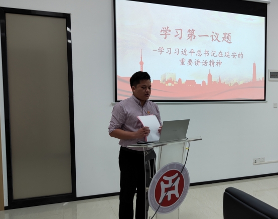 会议伊始,江庆基同志宣告此次党员大会的主要任务,并带领全体党员认真学习习近平总书记在延安的重要讲话精神。