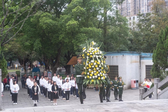 全体师生依次上前献上鲜花,表达对英雄烈士的敬仰和哀悼之情。