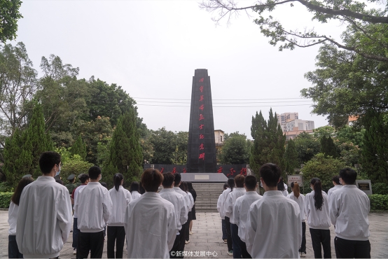 在庄严的烈士纪念碑前,师生们向英烈默哀,表达崇敬之心、感念之情、传承之志,再次接受深刻的思想教育和精神洗礼。