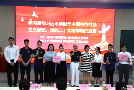 为推进四会校区学习贯彻习近平新时代中国特色社会主义思想主题教育走深走实、入脑入心,引导四会校区广大党员干部群众全面深入学习领会党的二十大精神,2023年6月20日晚19点30分,由中共广州华商学院(四会校区)委员会主办,广州华商学院(四会校区)党政办公室承办的主题教育知识竞赛在四会校区8号楼109教室举行。四会校区党政领导班子全体成员、各职能部门负责人、各支部书记及委员,教职工代表现场观看。
