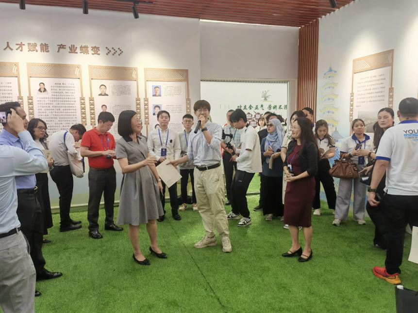 (图为我校外国语学院青年教师现场为外国友人翻译讲解)