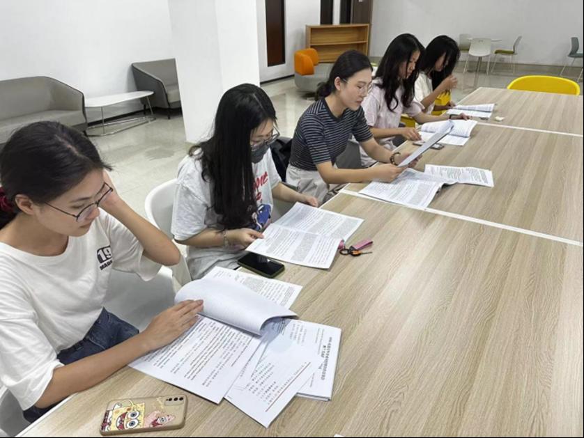 (图为我校师生志愿者提前踩点、文稿翻译准备)