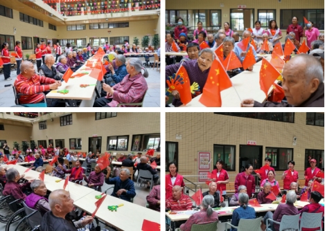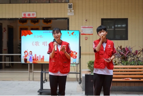 志愿者与长者们合唱《我和我的祖国》、《歌唱祖国》。