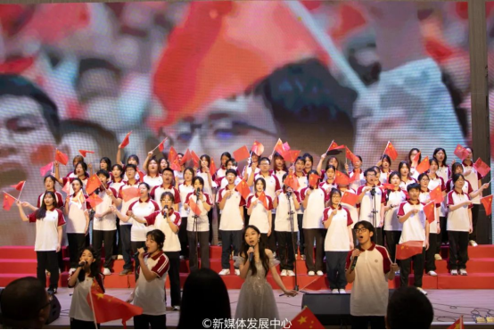 ——校飞跃艺术团歌手队与外国语学院合唱团《我和我的祖国》。