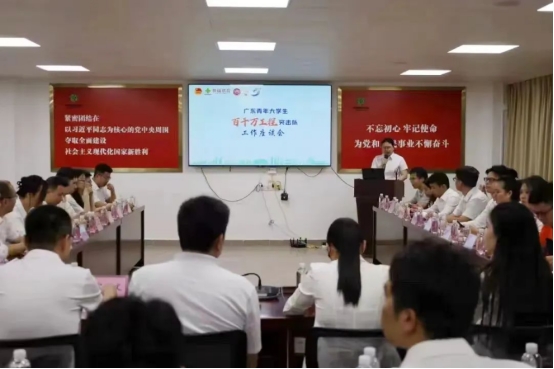广东青年大学生“百千万工程”突击队工作座谈会上,我校“百千万工程”突击队代表“小旅进镇”作工作成果展示,与会人员围绕下一步工作开展进行热烈讨论。