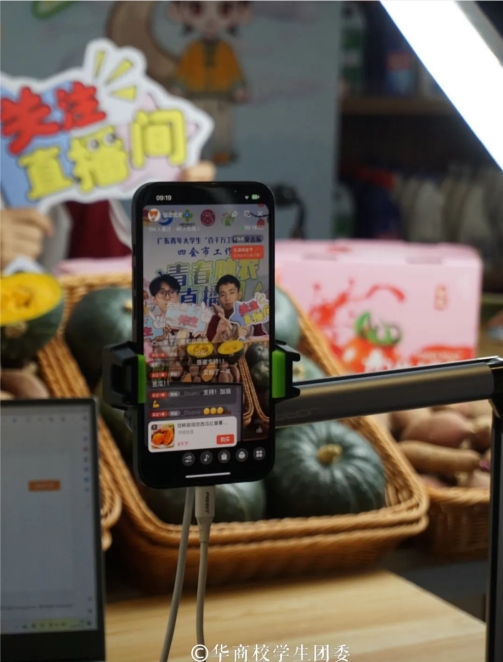 此前,广州华商学院肇庆校区分站——广州华商学院“百千万工程”青年突击队四会工作站已于去年11月在我校建成落地,并结合专业优势组建16支“百千万工程”直播突击队。我校团委与黄田镇政府、团委及佛山市驻黄田镇帮镇扶村工作队深度合作,积极打造百千万工程实践平台。突击队队员们也依托工作分站,利用学校多媒体智慧教室,针对四会特色农产品,如小蜜薯、贝贝南瓜、大鼎苦瓜等开展助农直播。直播时长超1000分钟,吸引人次达3000余人,点赞量达50000+,售出农产品百余件。