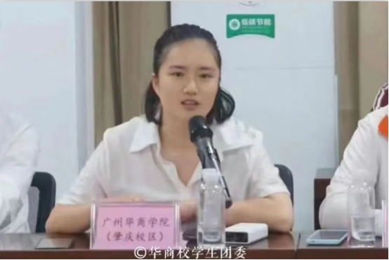 我校团委专职团干陈巧巧作动员讲话。她首先对相关单位长期以来关心支持我校共青团工作表达衷心感谢。她提到,此次工作站的建成是一次良好的契机,希望我校百千万工程突击队队员能依托此工作站积极投身“百千万工程”,开展助农直播,提高农产品销售能力,让更多本土优质农产品通过电商直播平台走出去,促进直播电商有序发展,以更大力度、更优服务推动电商直播助力四会乡村振兴。