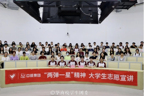 听了学生代表的演讲之后,在场的华商学子们深感我国核工业事业发展的不易,深刻学习了“两弹一星”“四个一切”核工业和新时代核工业精神,希望华商学子们能积极投身于中华民族伟大复习事业之中,为实现中国成为核工业强国尽青春之力,用心绘制出青年青春洋溢的奋斗画卷。