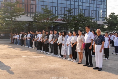 为深入学习贯彻党的二十大和二十届三中全会精神,落实立德树人根本任务,加强师生理想信念教育,9月2日7时40分,广州华商学院开学升旗仪式暨思政第一课在肇庆校区进行。