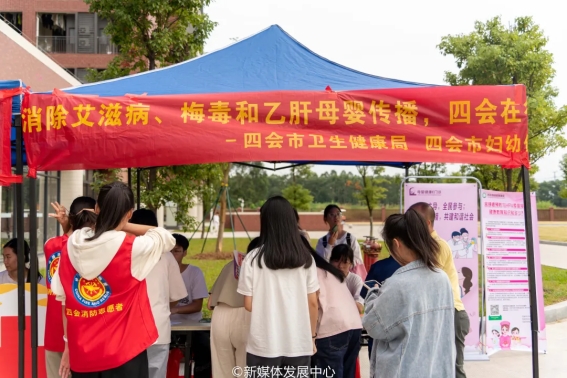 线下宣传活动中,各单位在19号楼下设置摊点。来自四会市妇幼保健院的专家们针对同学们的提问进行了耐心细致的解答,进一步加深大家对两癌知识、艾滋病和性病防治知识的理解。
