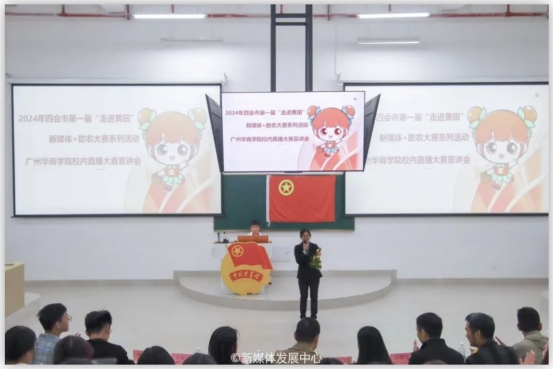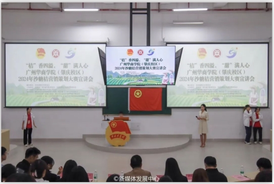 为贯彻落实党的二十届三中全会精神,进一步深化广东青年大学生“百千万工程”突击队行动,加强校地共建,助力四会市建设加力提速,推进黄田镇产业发展,11月27日19:00,“桔”香四溢,“甜”满人心——广州华商学院2024年“走进黄田”新媒体+助农大赛宣讲会在肇庆校区16号楼312举行。