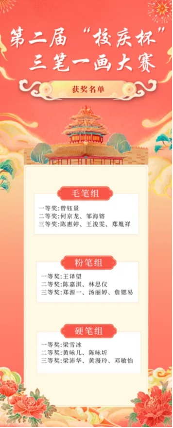 至此,广州华商学院“启航新征程、墨舞青春韵”,“校庆杯”第二届三笔一画大赛,圆满结束!