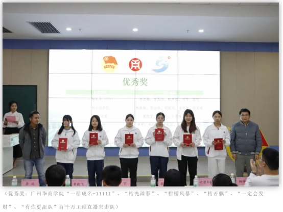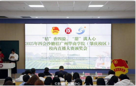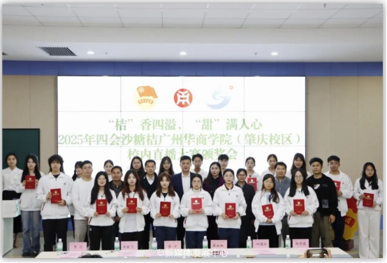 为进一步深化广东青年大学生“百千万工程”突击队行动,拓宽黄田沙糖桔的销售渠道,提升农产品市场知名度与影响力,在肇庆校区党委的领导下,在团四会市委的指导下,肇庆校区团委联合“广东大学生青年突击队”县级工作站、四会市黄田镇团委等相关单位,于2024年12月启动“桔”香四溢,“甜”满人心——四会沙糖桔广州华商学院校内直播大赛。历经一个月的激烈角逐与精彩纷呈的比拼,比赛颁奖仪式于3月17日19:00在肇庆校区8号楼109举行。仪式由广州华商学院华商之声广播电视台徐文静主持。