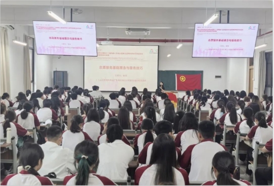 4月19日,在肇庆校区16号楼104,省讲师凌莉以《志愿服务基础理念与服务技巧》为题向志愿者们强调了无私奉献、平等尊重、团队合作、持续学习等志愿服务基础理念,引导志愿者们以正确的态度和精神投入服务中去;并特别强调沟通效能是服务成败的核心要素,通过精准把握服务对象诉求与运用亲和力表达,搭建起双向互动的信任桥梁。