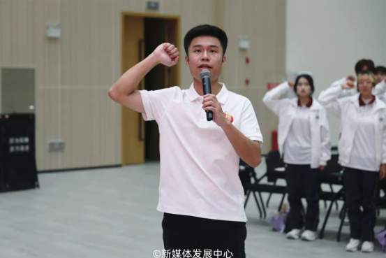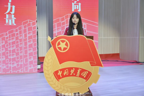 钟欣婷同学作为新生团支书代表发言,表达了坚定理想信念、勇担职责使命的青春誓言。