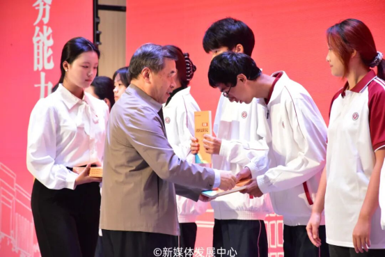 在赠书环节,学校党委副书记、副校长焦方太教授为新生团支书代表赠送学习资料,勉励大家系统掌握团务知识,提升组织引领能力。