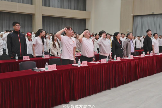 在重温入团誓词环节,全体团支书在校团委何以立老师的带领下,面向团旗庄严宣誓。誓言铮铮,彰显了新时代团干的坚定信仰与使命担当。
