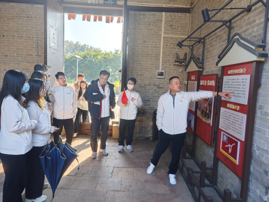 首站,全体同志一同前往黄田镇江头上寨村,走进江头乡农会旧址与陈伯忠故居。在庄严肃穆的故居内,同志们通过历史陈列,深入学习了四会农民运动的峥嵘岁月。在中国共产党的领导下,以陈伯忠等为代表的革命先驱,组织成立了四会农民自卫军。这支队伍在保护农会、威慑反动地主武装、争取基层权益等方面发挥了至关重要的作用,为四会县党组织的建立奠定了坚实基础。陈伯忠烈士“为革命无私奉献、为工农英勇奋斗”的崇高精神,深深感染了在场的每一位同志,使大家接受了一次深刻的思想洗礼。
