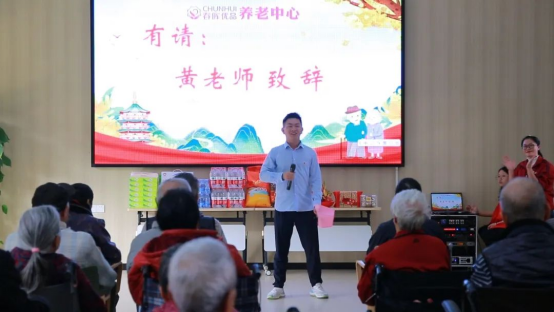 活动正式开始,养老中心植主任和会计学院黄健老师进行开场致辞,讲述活动目的及对老人的美好祝愿。