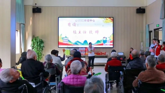 第一环节,志愿者们将精心准备的表演节目展示给老人家们观看,将最好的一面展现在舞台上,老人们跟随着音乐的节奏鼓掌、挥动手臂,笑容满面,眼神中闪烁着对生活的热爱和期待,现场氛围温馨且融洽。