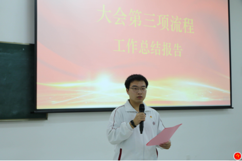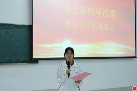 随后,校学生党建工作委员会执行主任黄境锐同学对本学期的工作作总结汇报。总结指出,在学校党委的领导下,全体学生骨干的共同努力中,校学生党建工作委员会组织完成党委党校交办的各项培训及宣传工作任务,成功开展了校内各项文化志愿活动和大赛,积极服务于学校党建工作,践行了全心全意为人民服务的宗旨,取得了卓越的工作成果。同时,黄境锐同学就组织建设和工作方式中出现的问题,对学生骨干提出几点建议和要求,他表示全体学生骨干要能够永葆“闯”的精神、“创”的劲头、“干”的作风,以更加积极的态度应对未来工作的开展,推动学生党建工作再上新台阶。最后,刘玉诗同学代表部门负责人发言。她强调青年对于国家发展具有重要作用,倡导全体学生骨干要牢记为人民服务的使命,继续努力为组织发光发热。