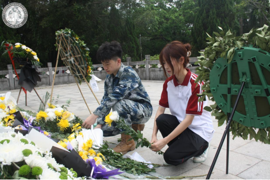 鲜花献忠魂,英名垂青史。徐强老师带领全体师生向革命先烈敬献花圈、整理绶带,表达对烈士们无限敬仰和深切缅怀。