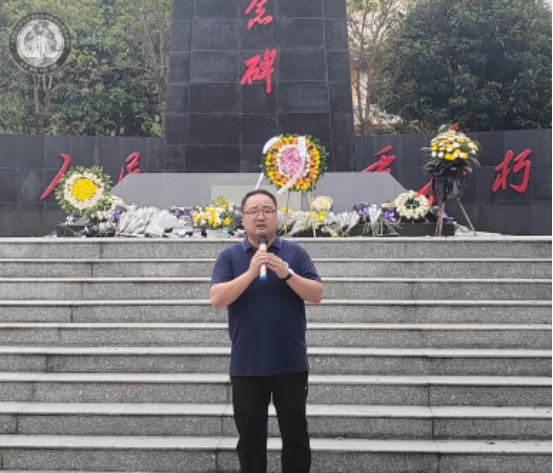 全体人员在纪念碑前默哀一分钟,表达我们对先烈不尽的敬仰和追思,通过追思先人,缅怀先烈的丰功伟绩,继承先烈遗志,铭记历史使命。