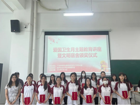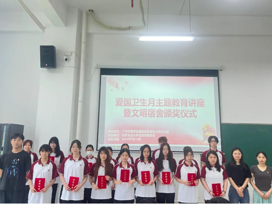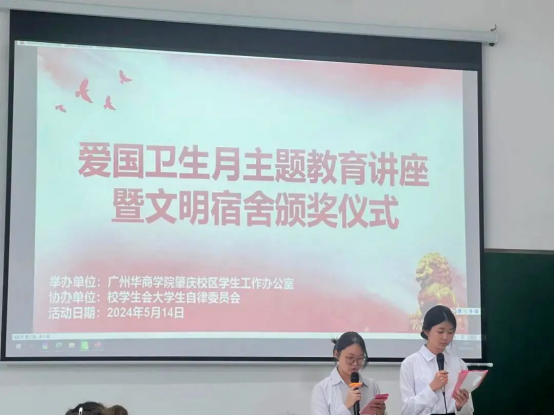 2024年5月14日下午,广州华商学院(肇庆校区)在六号楼206室举行爱国卫生月主题教育讲座暨文明颁奖仪式。