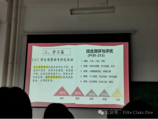 针对班里同学旷课、迟到、早退等情况,以及上课带早餐、玩手机、睡觉等行为,学院安排了班委进行及时的提醒,并且抓典型,针对部分同学多次提醒无效,班级氛围普遍较差时,适当开展班风班会,提醒同学们共同维护好班级氛围、营造良好学习风气。班会以良好的班风给班级同学带来的良好影响等角度进行开展,比如,任课老师认可班级的学习热情,将使每一个人都能有可观的平时成绩;评优评先时,尤其是优秀团支部、综测先进班集体、文明安全纪律月先进班集体、创先争优示范班等的评选,都需要班级优良的学风和班风,并凭借集体优良的成绩和班级氛围来增加评奖的机会。