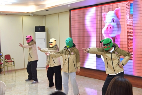晚会上大家笑口满面,大家都完全沉浸在这场愉悦轻松的晚会。最后祝愿每一位老师在新的一年里好运连连,心想事成。