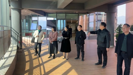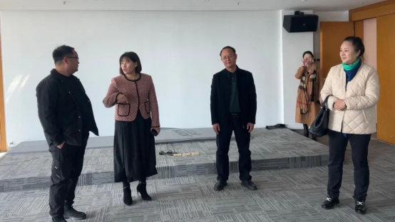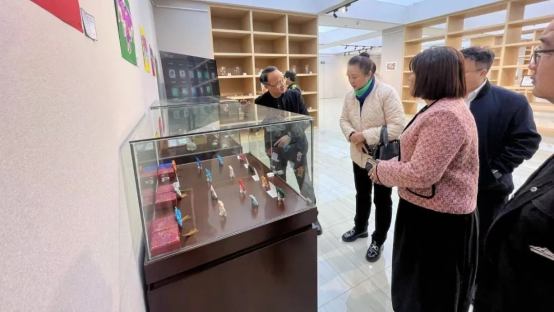 在参观环节中,许娜副校长一行人来到肇庆文化馆与赵金强馆长和邓琴副馆长一同参观了端砚精品展、迎新春书画展、岭南书院非遗专题展等,赵馆长详细介绍了肇庆市文化馆近年来在推广和保护非物质文化遗产方面的成果,令人受益匪浅,拍手称赞。随后,一行人陆续参观了包括有舞蹈室、健身房、演播厅、报告厅、多媒体电教室、器乐合奏室、大教室、数字资源体验室和图书室等文化与现代科技融合的功能室。