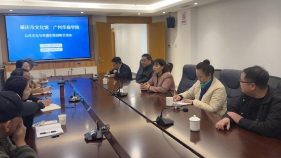 2024年12月17日上午,阳光和煦,广州华商学院副校长许娜、李宏复教授、学生处处长黄国富、校团委书记陈刚,肇庆校区学工办古文胜科长一行人前往肇庆市文化馆进行参观学习。赵金强馆长及邓欢副馆长等热情接待了许娜副校长一行。此次活动旨在借鉴肇庆市文化馆在学生书院建设与管理方面的宝贵经验。双方就文化传承、发展、创新,文化教育等领域合作进行了深入探讨。
