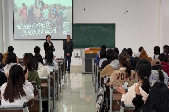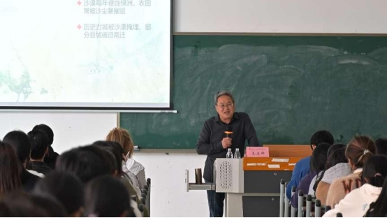 讲座中,王老师分享的鲜活案例令人动容:河南姑娘晏姣姣通过种植四翅滨藜肉苁蓉实现创业梦,维吾尔族青年艾力·库尔班从贫困牧民变身产业带头人,残疾妇女古丽见尼提凭借顽强毅力在沙海中种出希望。他通过一个个真实的故事,展现了援疆干部们不畏艰难、无私奉献的精神风貌,同时也深刻阐释了生态治理与生态福祉之间的紧密联系。